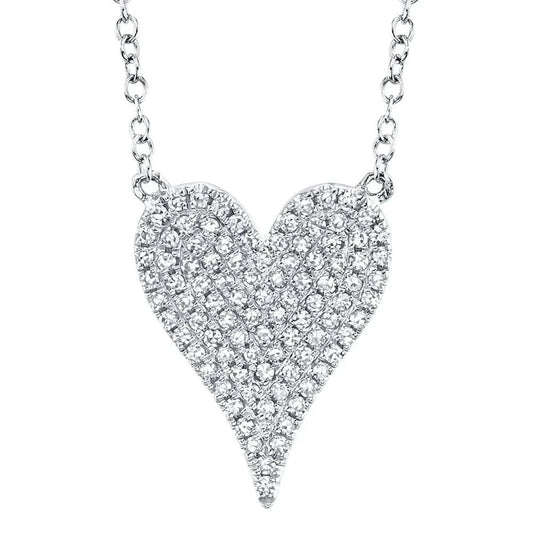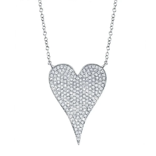 14K Yellow Gold Pave Diamond Heart Necklace - Large