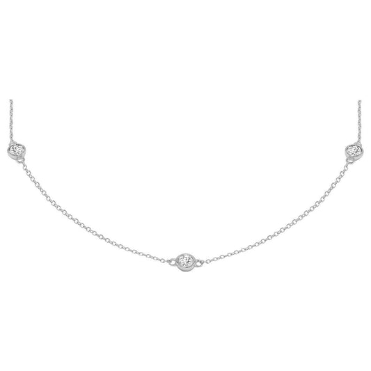 14K White Gold 0.50ctw Lab Diamond Station Necklace Bezel