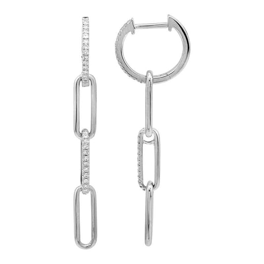 14K Gold Diamond Triple Link Paperclip Drop Huggie Earrings