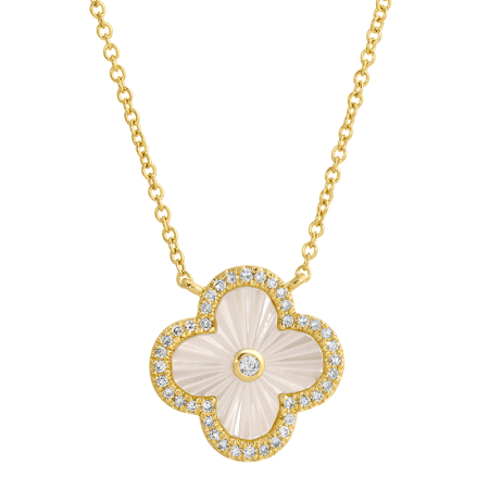 14K Yellow Gold Diamond Pave Heart Paper Clip Link Necklace