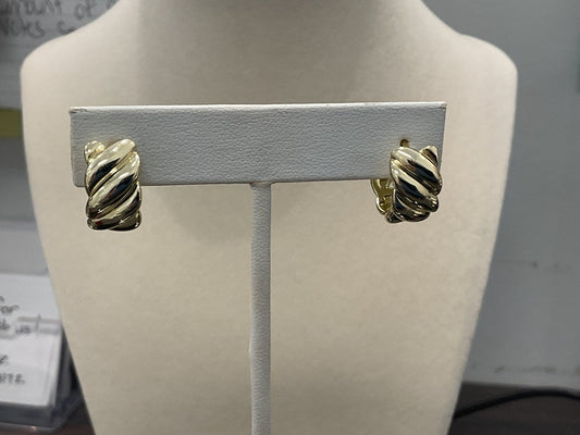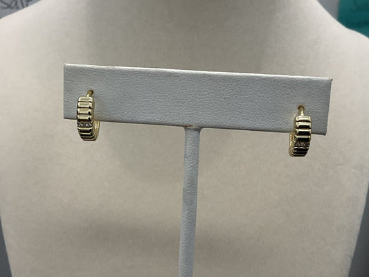 14k Yellow Gold Bezel Set Diamond J Hoop Stud Earrings