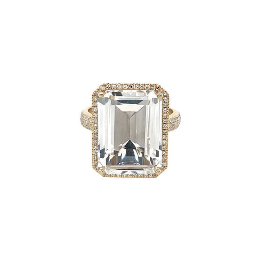 14K Gold Diamond & Blue Topaz Baguette Ring