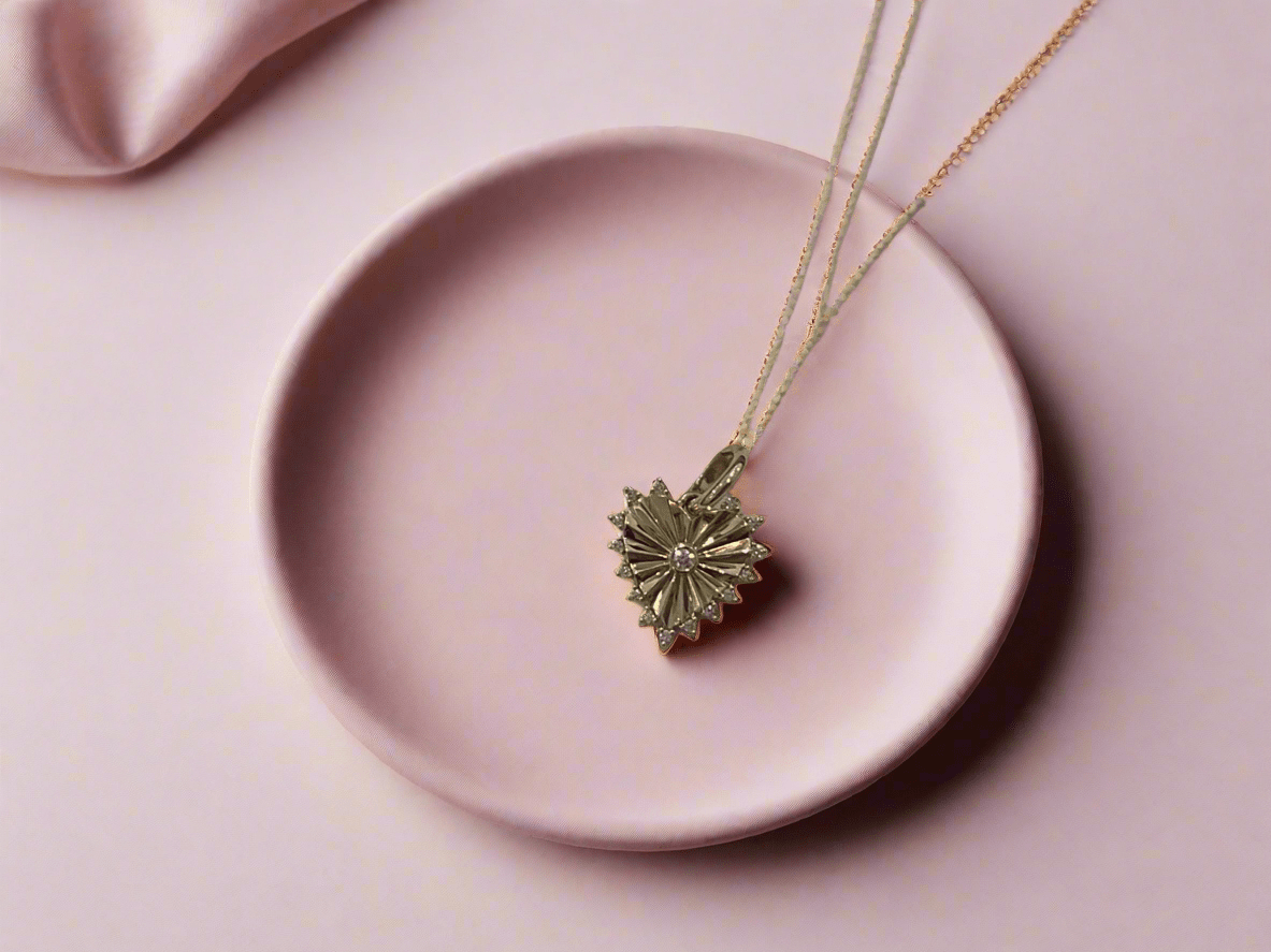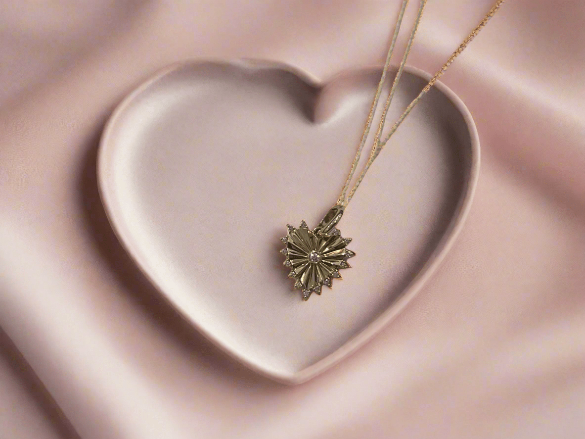 Diamond-Pointed Fluted Heart Charm in 14K Yellow Gold