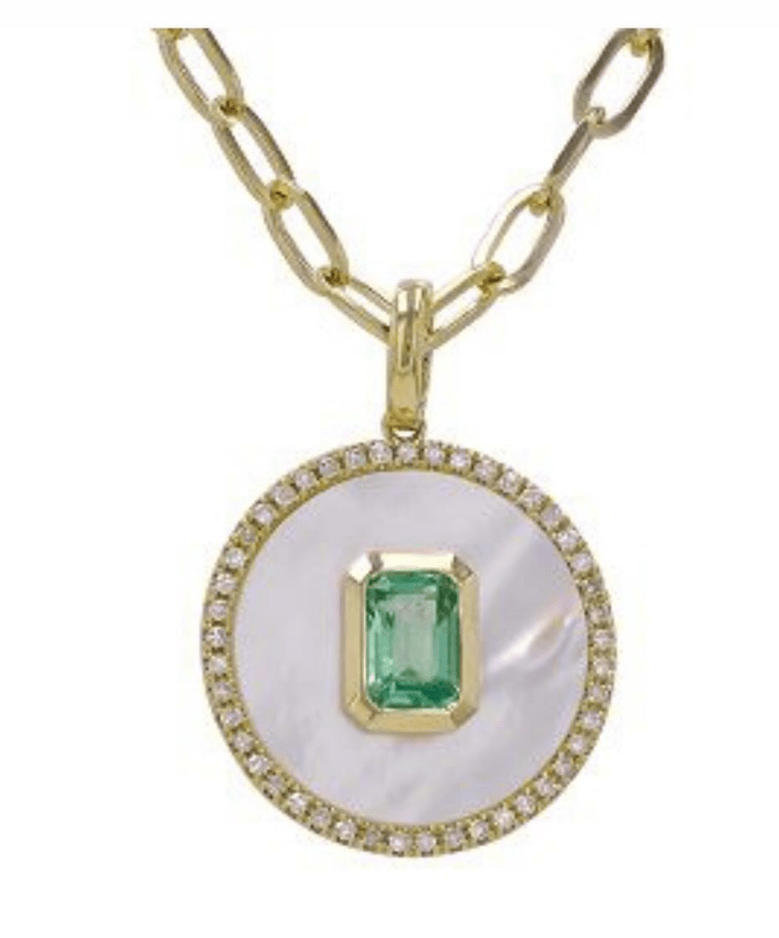 Mother of Pearl + Tsavorite Yellow Gold Pendant Necklace