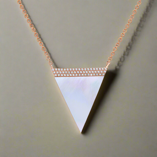 14k Rose Gold Mother of Pearl & Diamond Triangle Necklace