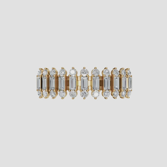 14k Gold Double Row Round & Baguette Lab Diamond Statement Ring (0.31ctw)