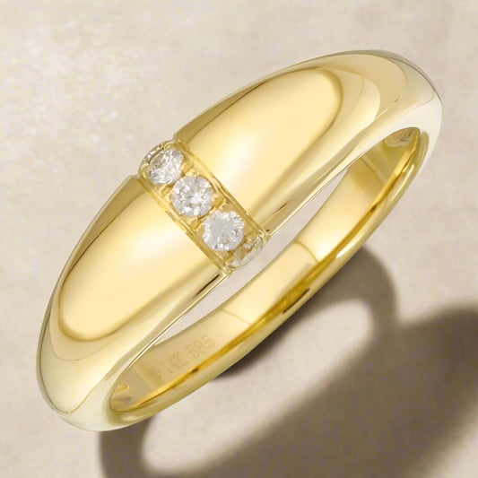 14K Gold Sculptural Dome Ring with Diamond Accents