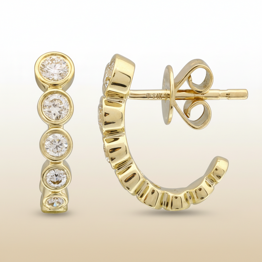 14k Yellow Gold Bezel Set Diamond J Hoop Stud Earrings