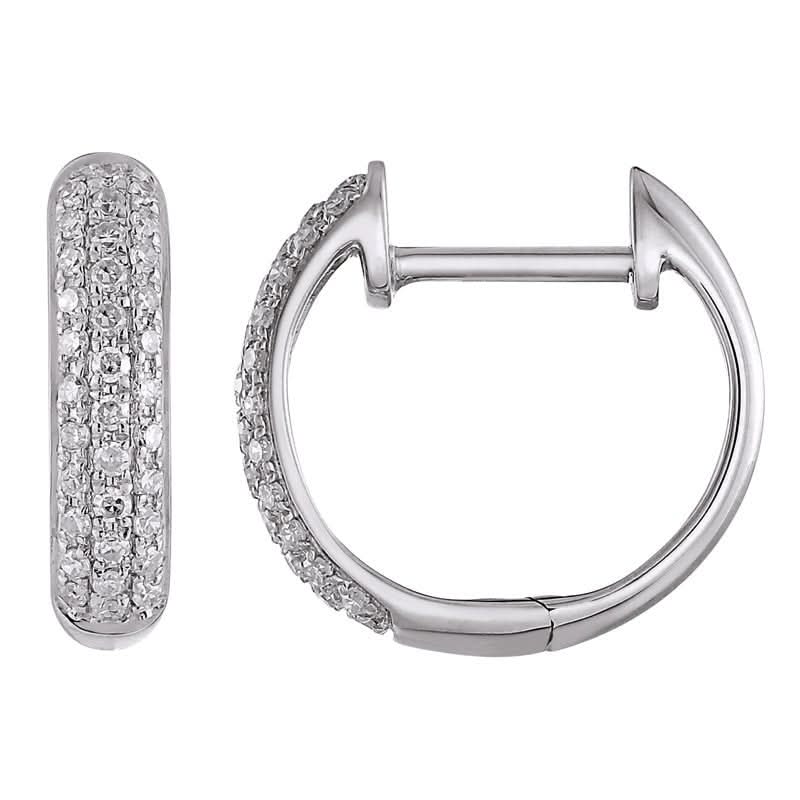14K White Gold Triple-Row Diamond Pave Huggies 13mm