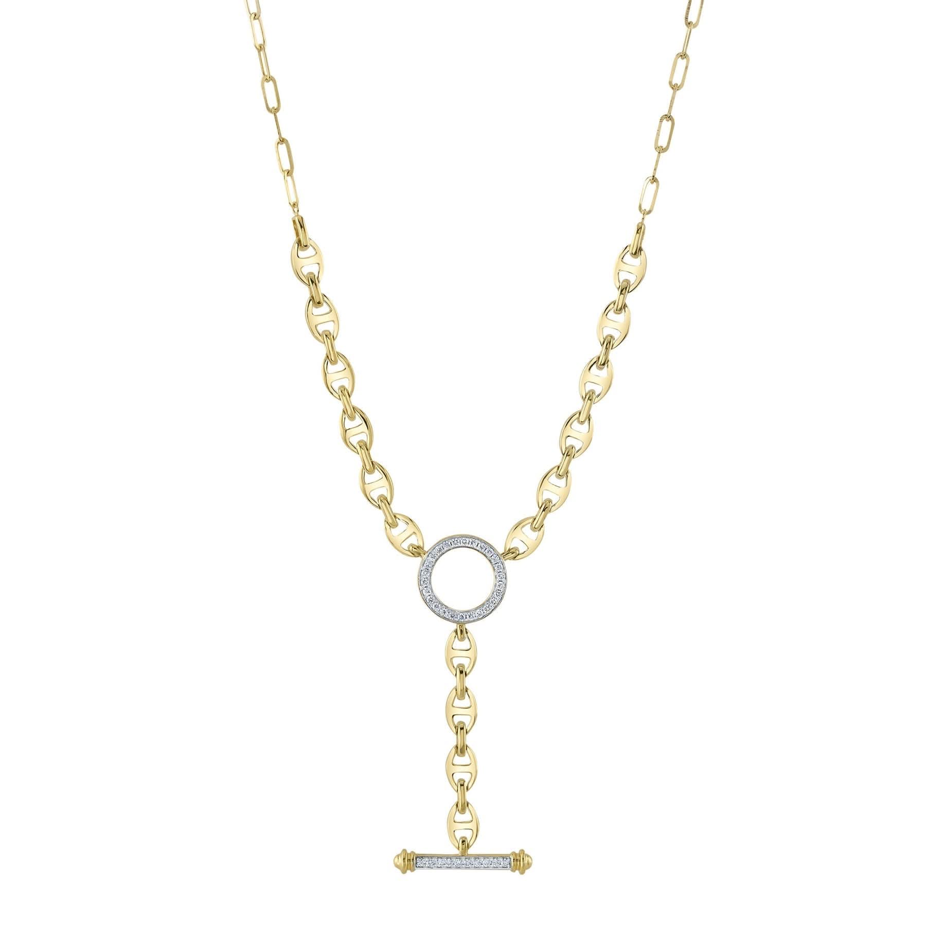14K Yellow Gold Diamond Circle Link Lariat Necklace