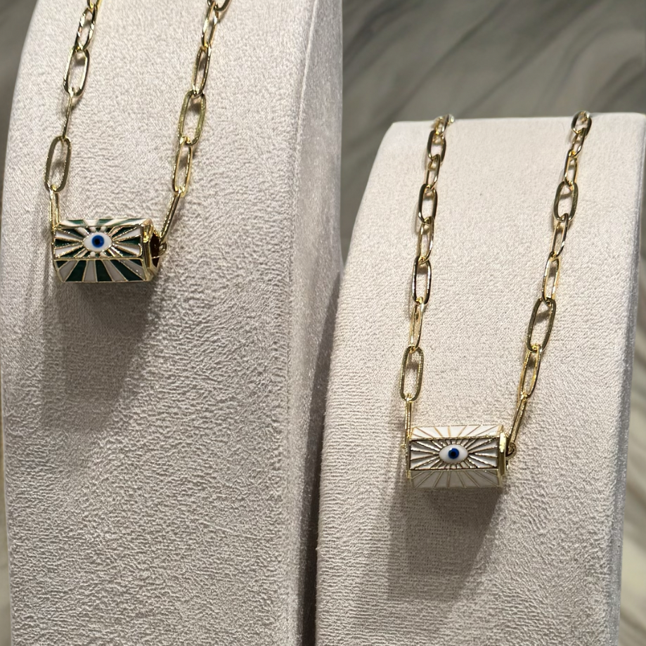 A modern twist on the classic talisman, this enamel capsule charm brings meaning and versatility into one striking piece. Each capsule carries its own quiet symbolism — some inscribed with AMOUR, others featuring protective motifs — all designed to attract good energy and keep negativity at bay.